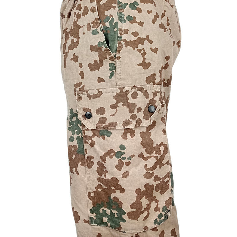 The German Army's choice of camouflage in arid/desert regions is the 3 colour Tropentarn pattern. The official name is drei Farben Tarndruck der Bundeswehr (three color camouflage of the Bundeswehr). Based on the established Flecktarn pattern, the Tropentarn is another popular camouflage pattern from the German army. These Tropentarn pattern trousers have a high cotton content, making them extra comfortable.