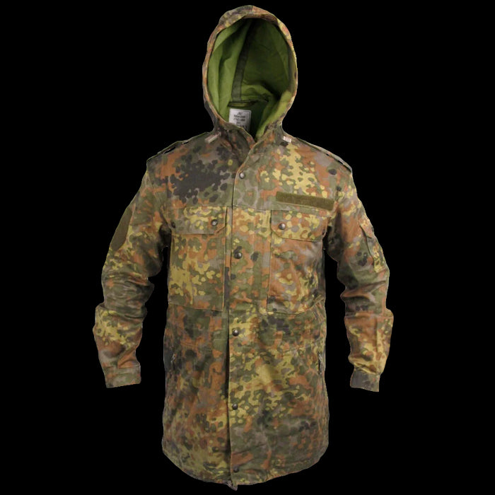 Germany's awesome flecktarn camo pattern, slapped onto a great quality parka. Although it doesn't come with the removable insert liner like our other German Parka it's still a fantastic over-jacket with an array of pockets. The perfect jacket for hunters and campers. This jacket brings style and comfort to the table whilst giving cold weather protection.