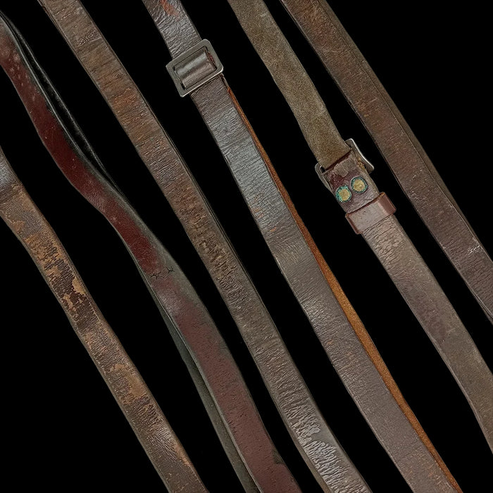 These slings have had a fairly hard run but are still kicking it and are ready to lend a hand. The 2 point attachment system is simple as, with a metal clip and stud to the other end. The leather has seen better days but we think the roughest ones will still hold their own and a little conditioning goes a long way. Some may need more attention than others, with a few having corrosion or heavier wear - see the 3rd image for an example. Pick one up if you're lucky enough to have a G3, or even if you want to have a go at repurposing it!