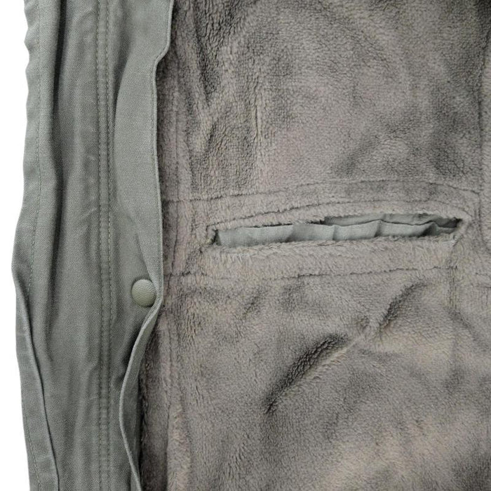 Donning this parka is easy - a strong YKK zip runs from the waist and up to the neck. If its getting extra blustery it has a full length storm flap you can button up to keep the draught at bay. The main standout feature for this parka is the inner liner. Easily added or removed with snap domes, it runs the full length of the parka right from your knees, all the way down the arms and right over your head in the hood. Made from medium weight faux fur it will keep you plenty toasty and still be able to maintain movement. Those thoughtful Germans even left inserts in the liner so you can reach the parkas internal chest pockets - quite handy when reaching for a dry cigarette in bad weather! The parka also has 2 deep pockets that run down the top of the thighs and some well placed waist pockets that run down on an angle - ideal for keeping those hands warm. Get decked out for Winter with one of these German numbers, you won't regret it!