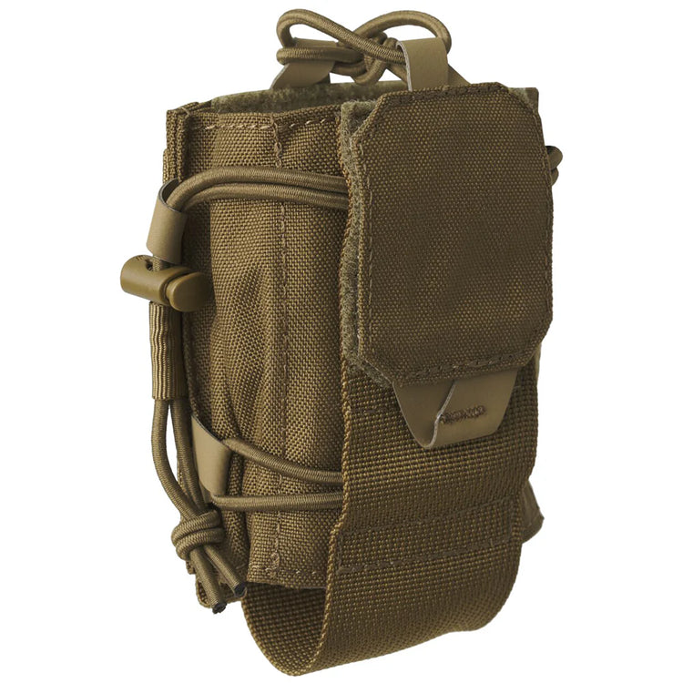 Communication equipment is crucial for uniformed services, and it should always be within reach. The Radio Pouch ensures comfortable and secure carrying of radio devices. Thanks to adjustable height and an elastic circumference, the pouch can adapt to different models and sizes of radios. A shock cord secures the radio from falling out while still allowing easy access to all controls on the top of the radio unit. The pouch can be attached to gear via a MOLLE/PALS-compatible system.