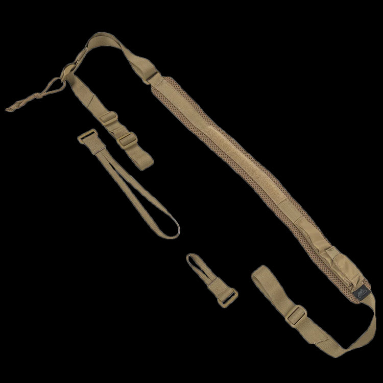 The Two-Point Carbine Sling is a sling for long guns that works well both in service and during visits to the shooting range. This thoughtfully designed two-point sling allows for comfortable and effective weight distribution, even with very heavy firearms. The Two-Point Carbine Sling features a quick-adjustment system that allows the sling to be adapted to any build and gear. The firearm is attached to the sling using straps threaded through plastic adjusters.