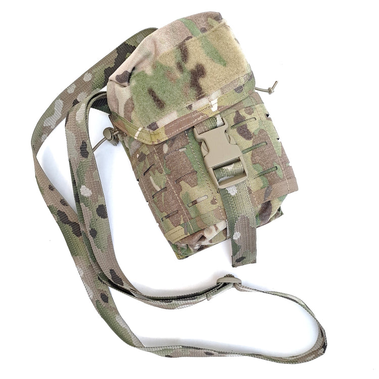 Ex-NZDF High Speed Gear 1qt canteen lasercut MOLLE pouch with shoulder strap in Multicam camouflage.