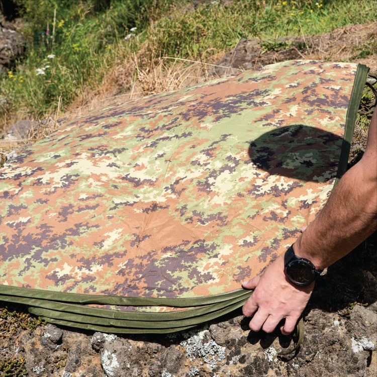 Considered by troops to be one of their most versatile pieces of equipment. This poncho liner can be used as a make-shift sleeping bag, shelter, blanket, camo hide or ground sheet. The eight ties - one each corner and side - allow you to attach it to a poncho or tie it to a tree for shelter. The camouflage print is slightly muted but still has that nice vegetato pattern. Grab yourself a woobie for a home emergency kit, camping or adding to your Italian collection.