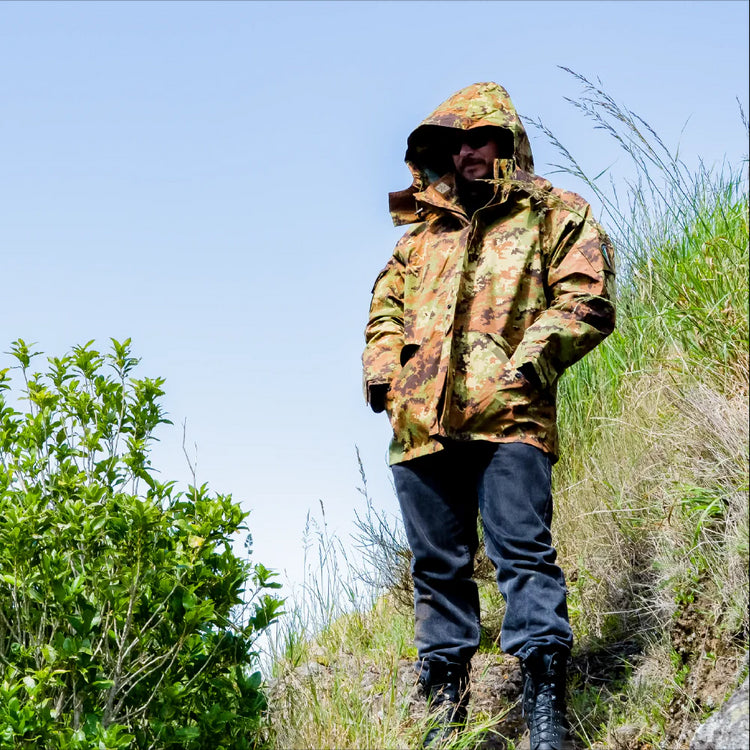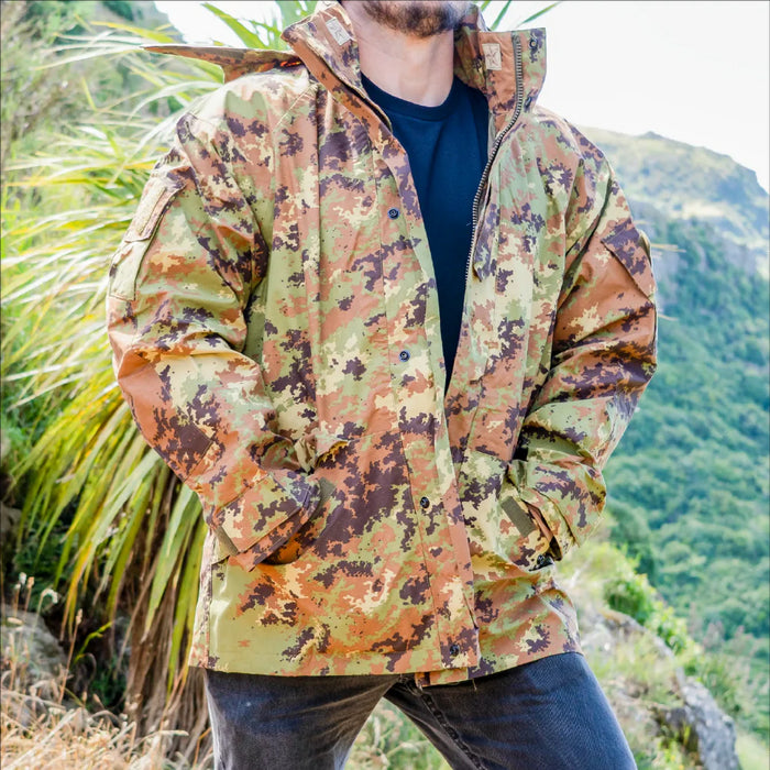 Are you stalking in the Sub Tropics or are you just a fan of Italian mimetico Vegetata? Even if you're neither, these rain coats are pretty wicked. In unissued condition too, capisce?