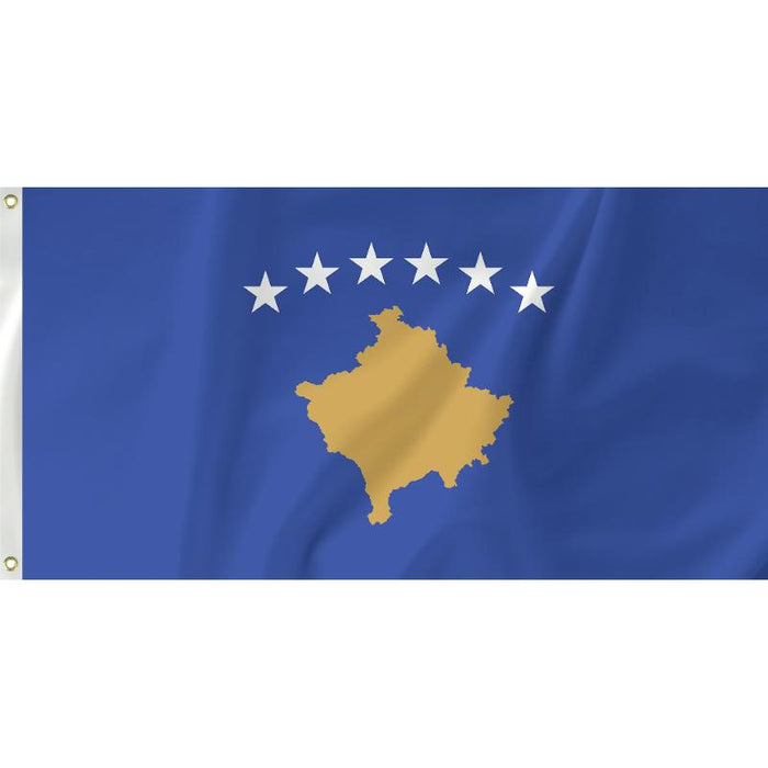 Kosovo adopted its flag immediately after their declaration of independence from Serbia in 2008. The flag features six white stars above a golden outline of Kosovo - the stars stand for Kosovo's six major ethnic groups.