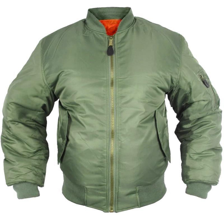 This is a replica of the classic USAF flight jacket... the MA-1! This popular bomber jacket protected pilots for decades, in the air and on the ground. The MA-1 was the first military flight jacket to makes it's way to mainstream outerwear. This version has the soft nylon outer shell and polyester internal lining.