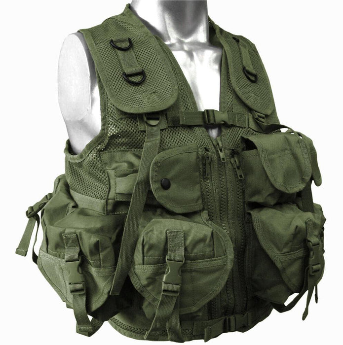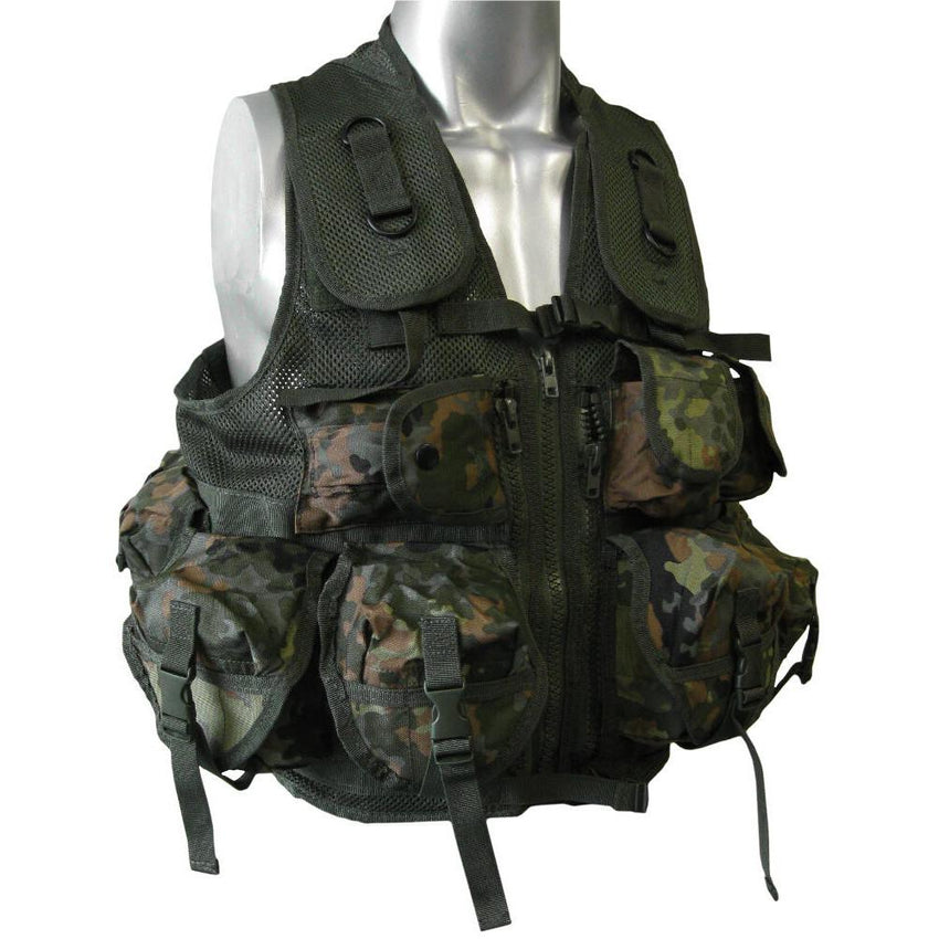 This 9 pocket combat vest from Mil-Tec is based on the British made 'Arktis 1601' battle vest. The 1601 was designed for soldiers in hot humidities, hence its mesh design. Although the pouches are stitched to the vest (meaning they can't be rearranged) they're placed in an optimum position for easy access. Mesh coverage allows for more breathability and less weight, making it perfect for long outings in hot weather.