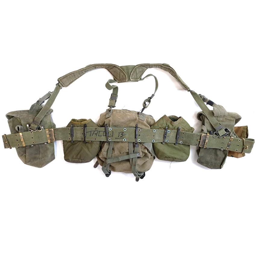 This set contains a US M56 belt and suspenders, US ALICE canteen pouches, and first pattern NZ L1A1 magazine pouches and buttpack.