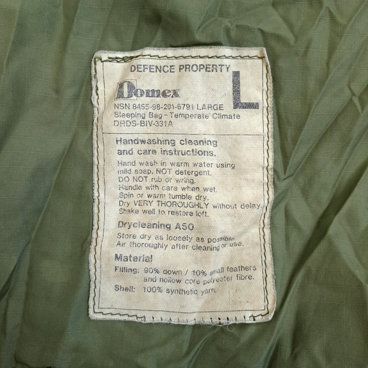 New Zealand Defence Force temperate climate sleeping bag made by Domex. Issued from the late 90's onwards. Comes with DPM cramsack made by Westlorn NZ.