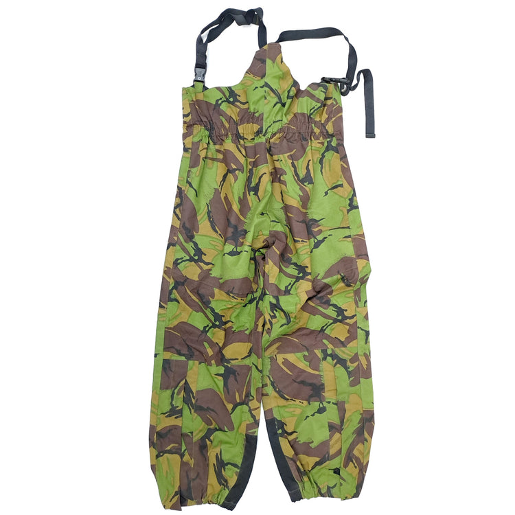 New Zealand Defence Force issue DPM wet weather trousers with suspenders. This model was issued out between the late 90s to mid 2000s.