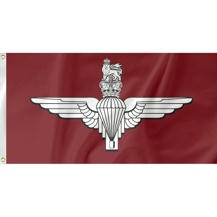 Show your support for the British Parachute Regiment with this distinctive flag. Completed with metal eyelets on the left side to attach to flag poles . Measuring 155cm x 90cm it will fit nicely in your house or workplace. Show your dedication and pick up a flag today!