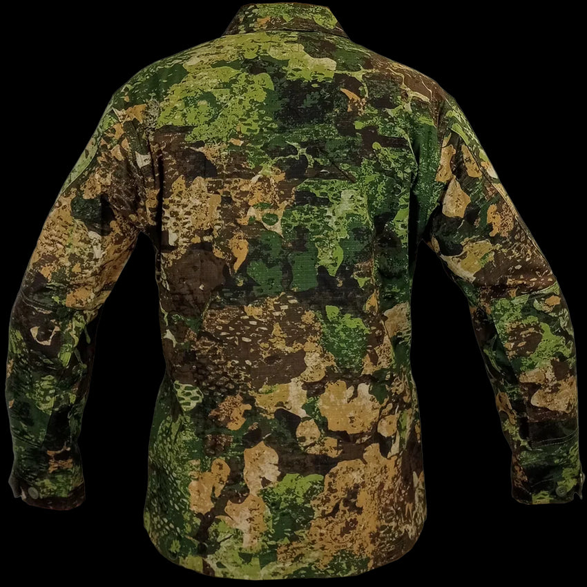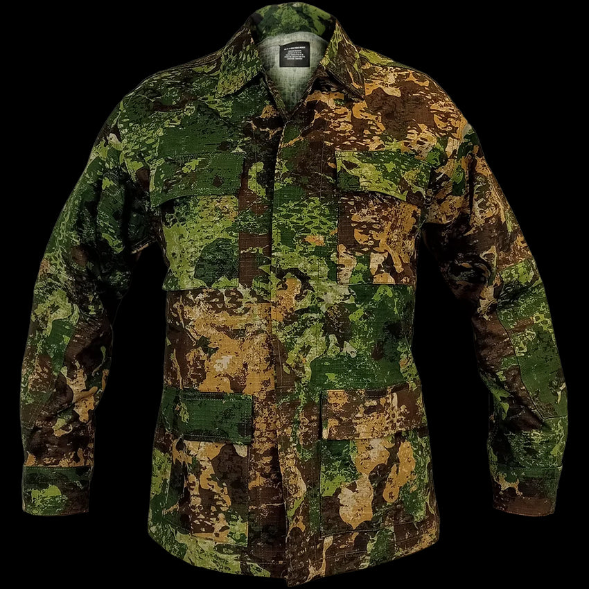 Mil-Tec has come out with its own new camouflage - WASP I Z3A! In short, it is intended for green Summer/Spring environments which it does superbly. Weather it be battlefield or hunting, these field shirts provide all the standard comforts of a military style BDU (Battle Dress Uniform).