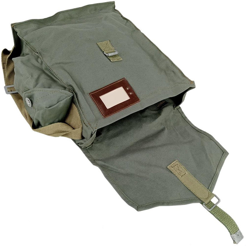 Light weight Polish gas mask bag with adjustable shoulder strap. Made from a medium weight canvas, with a small pocket on the outside of the bag and 4 internal compartments.