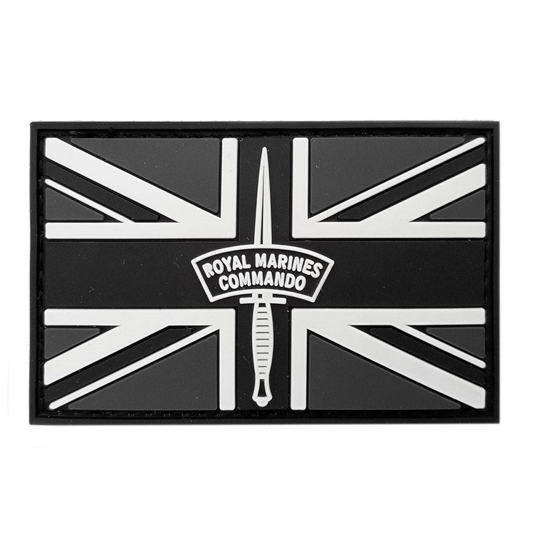 One of five arms of the UK's Royal Navy, the Royal Marines (also known as the Royal Marines Commandos and Corps of His Majesty's Royal Marines) are a very formidable amphibious force. This patch shows the Royal Marines Commando flash insignia overlying a greyscale Union Jack.