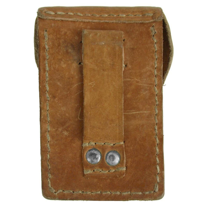 These Serbian or Yugoslav People's Army leather pouches are a compact and sturdy cartridge pouch. Rigid and defined these also are great for general purpose storage. A fantastic use for this pouch is making it into a potable medical or survival kit. The light, compact nature is great for carrying around or attaching to your gear. The tough leather keeps your equipment safe from taking hits. These come in an array of browns and some could do with more conditioning than others, but they are all ultra durable.