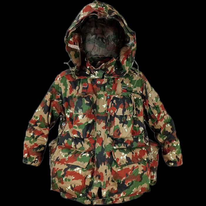 This Swiss army M70 jacket was the pinnacle of quality and versatility for it's time. Issued from 1957 to 1983, this jacket was designed with a huge amount of storage, it's essentially a load bearing system on a jacket! All in iconic TAZ 57 (Alpenflage).