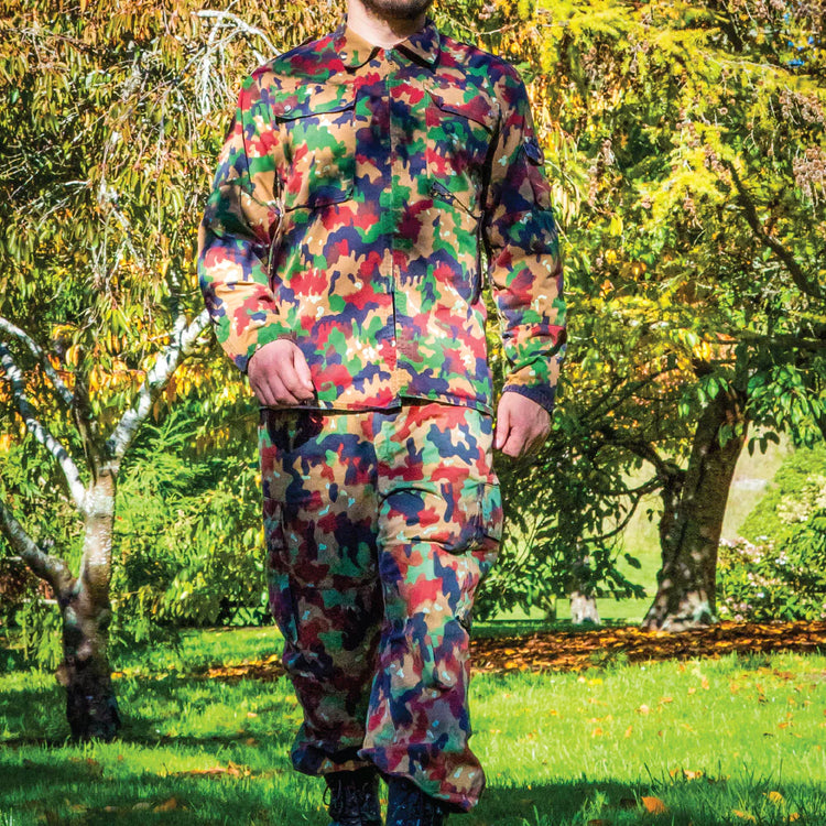 The Swiss TAZ 83 (Tarnanzug 83, also known as Alpenflage) camo pattern is perhaps the most striking and strangest of all military camouflage patterns, but it still stands as an effective and stylish design. The trousers themselves are quality made, versatile and durable. These ones are unissued!