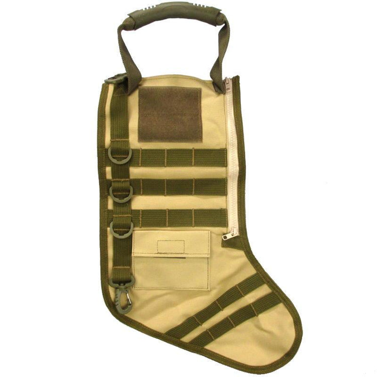 Are you or one of your loved ones an absolute tactical fanatic? Treat them this Christmas with a tactical stocking! With plenty of room to stuff tactical goodness inside, the outside is much the same. With multiple strips you can attach any MOLLE pouches and the kitchen sink if you need too. A carry handle, two rotating clips and multiple D-rings provides plenty of options for mounting above the fireplace or tree. The finishing touch is the hook & loop area - buy one for each family member and slap on their favourite morale patch so they will know it is theirs!