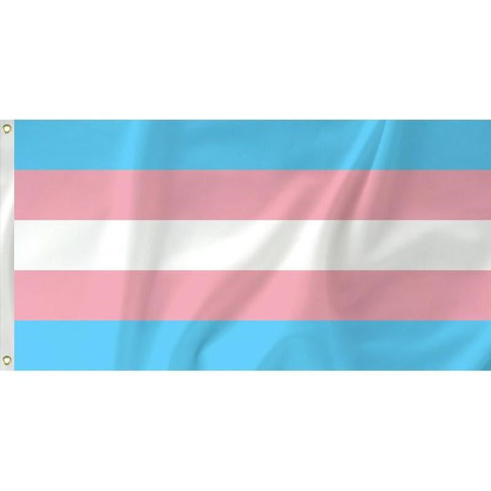 Show some pride with one of these colourful transgender pride flags. This quality made flag features a 3 colour pattern that is mainly associated with transgender pride. Two brass eyelets allow you to fly this colourful flag or pin it to your wall.