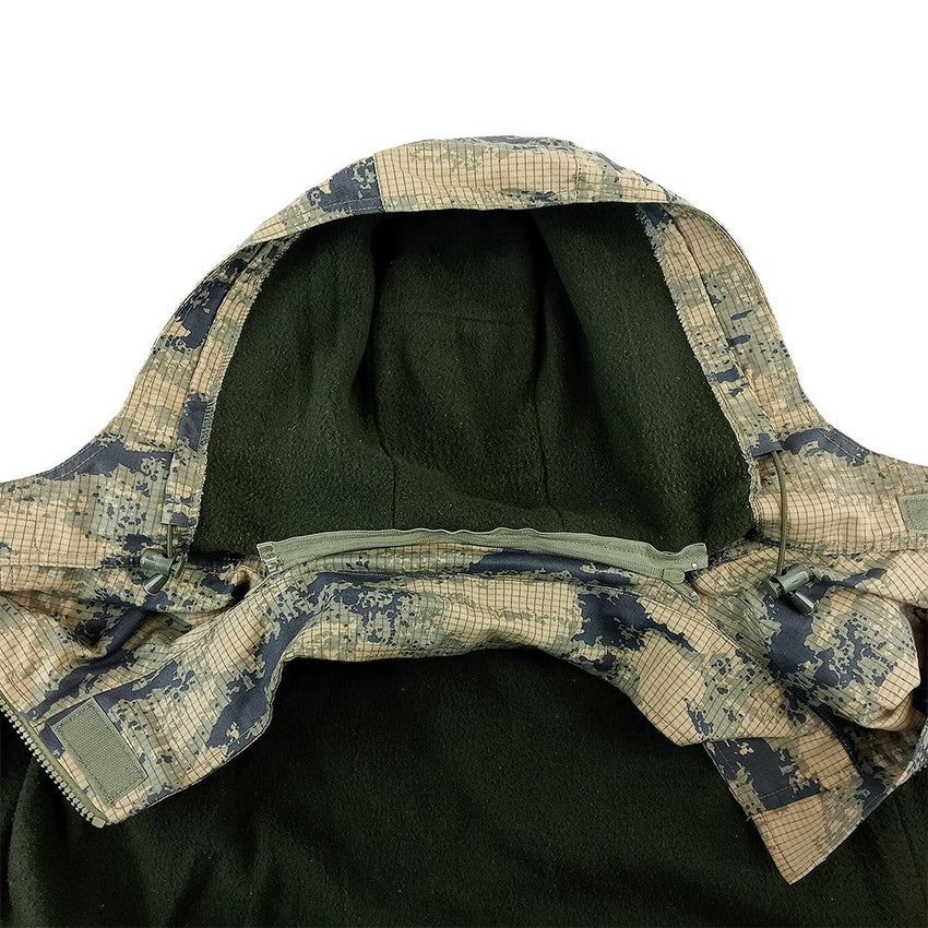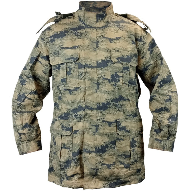 Unusual camo time, lads! This well constructed parka is from the Turkish Airforce. This camouflage has a modern touch, with grid running throughout the pattern, navy blue and olive green over a tan base. It's a Turkish delight and translates well into civillian clothing after a life with the flyboys. The parka has a zip in (or off) fleecy vest liner + zip removable, fleece lined hood. It's got a good heft to it and with the zip in liner, is adaptable to how much layering you're after! Chuck one on and spout facts about F-16's with the lads. Or just look nifty and stay toasty.