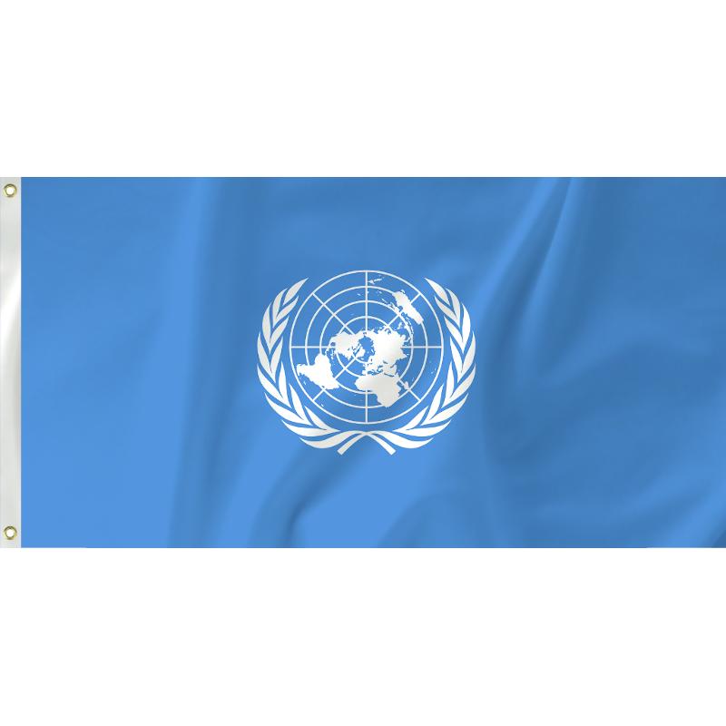 The United Nations adopted their flag in 1946, shortly after the end of the second World War. The flag features a globe to represent all the nations surrounded by olive branches, a symbol for peace.