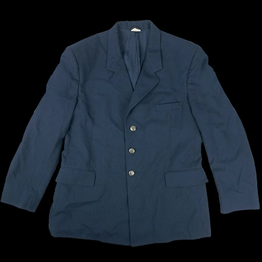 A tailored, dark blue, wool-blend US Air Force jacket. Featuring silver-tone buttons and a notch lapel, sharp as.