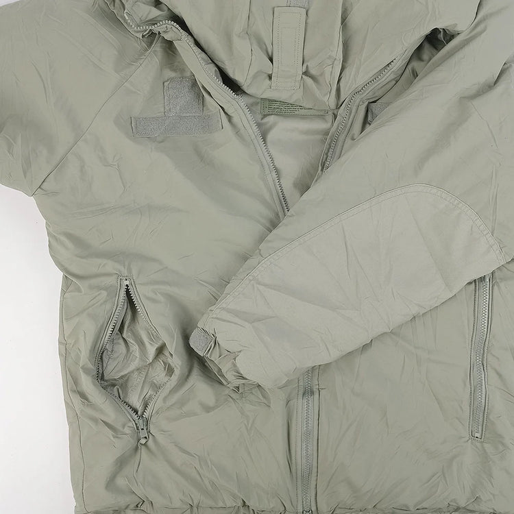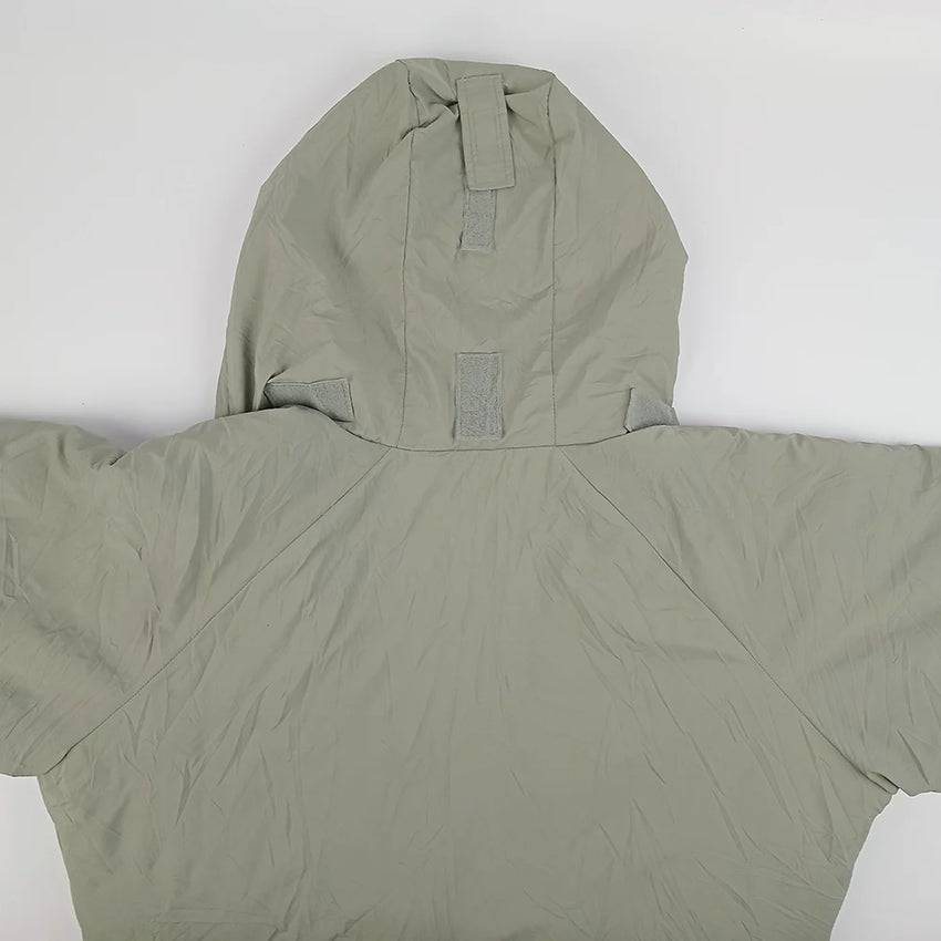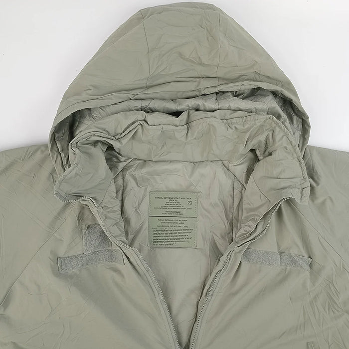 Intended for US military use in dry but extremely cold conditions. The outermost layer of the ECWCS with stowable insulated hood.