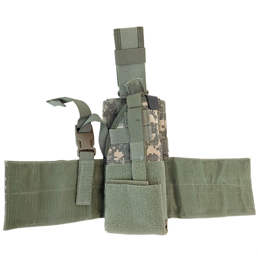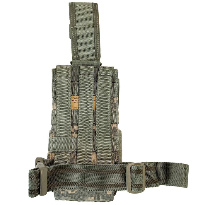 Made for the US Army in the mid 2000s, these universal holsters are designed to carry a wide range of full sized pistols but primarily for the Beretta M92f (these feature a plastic insert that contours to the M92f's slide - it can be removed easily however). It's ambidextrous design allows it to be worn on the left or right thigh, around a belt or attached to MOLLE equipment. A fine piece for shooting at the range or for airsoft.