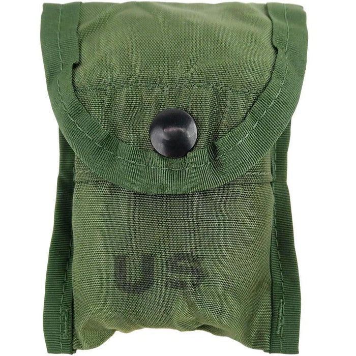 Genuine Government Issue rugged O.D. nylon Compass / First Aid pouch. Made for the U.S. Alice web gear system, this design goes back to the Vietnam war and is still in use today. Great for carrying your compass, bandages, tourniquet or any other compact items.