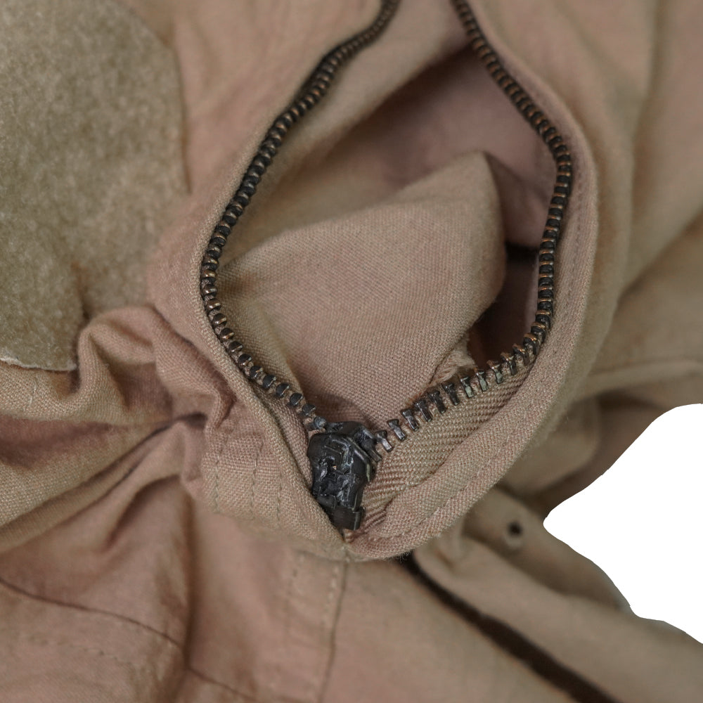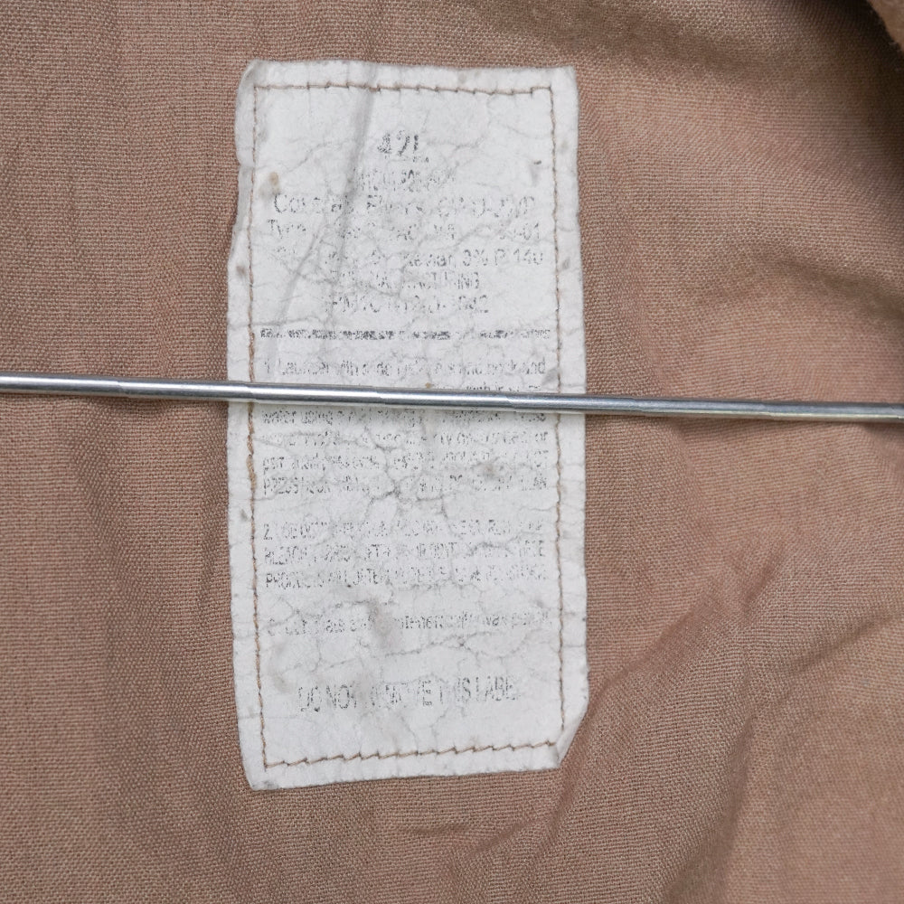 USGI Flyer's tan overalls in size 42L. Full-length one-piece construction in tan, with a front zip closure and integrated trouser legs.