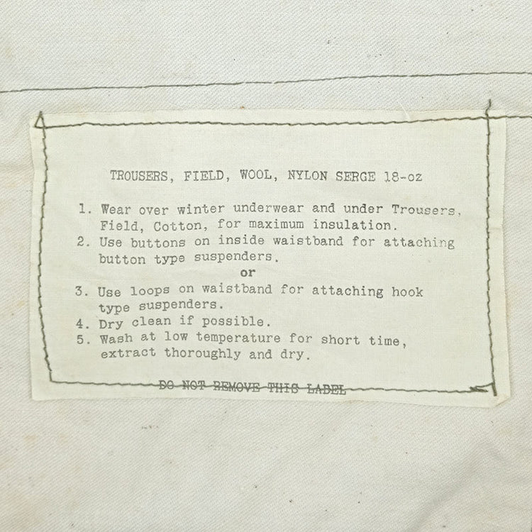 The M-1951 field trousers as the name implies came about due to the vicious Winter fighting encountered in the 1950's during the Korean War. Designed to run large width ways so the soldier can wear arctic liners underneath (some have buttons inside the waist for attaching the M51 liner). Made from 18-oz wool with a nylon serge this material is tough & works great as a natural body heat regulator in both cold and warm weather. Equipped with all the usual bells & whistles - generous rear & slash pockets and adjustable waist tabs. Some have zips and some have a button up fly.
