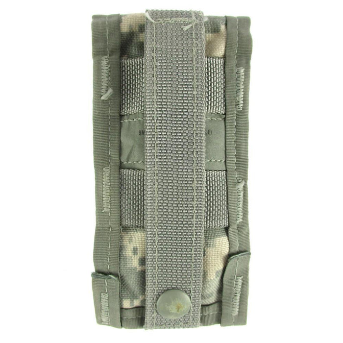 This is a genuine US MOLLE II 9MM Magazine Pouch (Single). As with all MOLLE gear, this pouch is designed to be attached to other pouches or packs via the PALS webbing system to configure your gear to your liking.