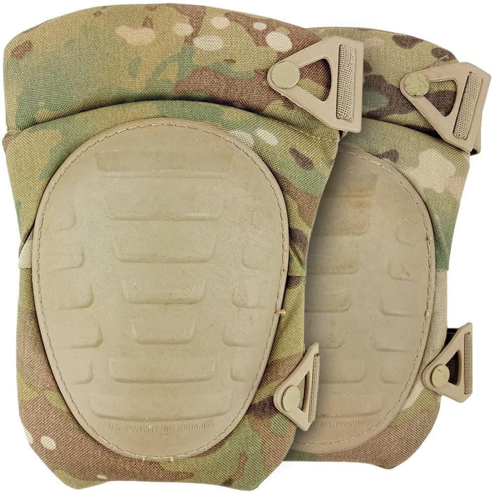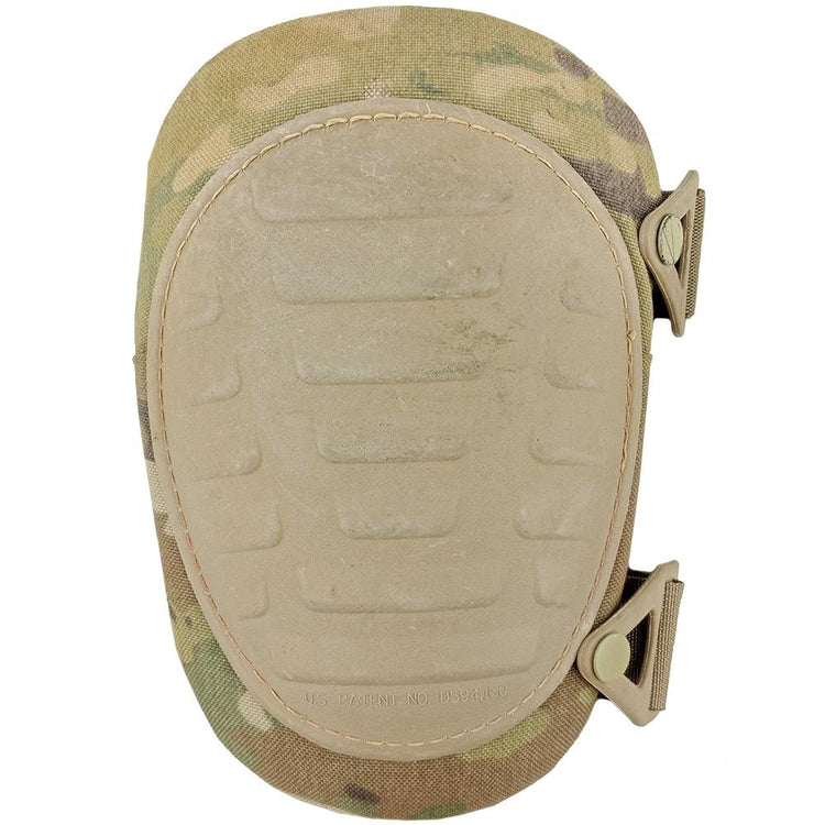 One of the more recent knee pad designs that has seen use with the US military in the last decade. Complete in the Multicam pattern, these are ideal for a wide range of climates while negotiating challenging terrain. A large improvement over previous non-integrated knee pads is the removal of hook & loop. These knee pads instead utilize elasticated straps that self torsion with a well designed buckle. This 'buckle' also has a hook that latches on a dome allowing quick donning/release. Plenty of padding behind a hard shell that holds its adjustment much better than previous iterations!