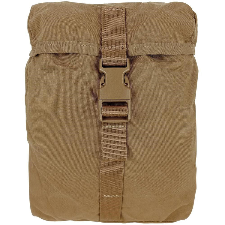 The pouch keeps it simple with one large main compartment, fastening with a quick-release buckle and draw cord. On the rear, four snap dome straps allow attachment to MOLLE/PALS webbing. Sustain your need for genuine surplus and grab a couple of these pouches for extra storage on your hiking pack or even pack an emergency kit in your vehicle.