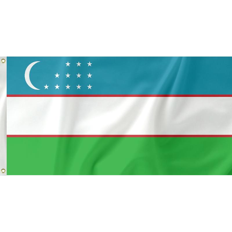 Uzbekistan adopted their flag in 1991 after the fall of the Soviet Union. The flag features 12 stars which represent the 12 zodiac signs, 12 months of the year and is also considered a symbol of perfection. The number 12 is also an important number in Islam as it is the age a boy is considered an adult. The unique layout of the stars is intended - in Arabic script the stars line up with 'Allah.'