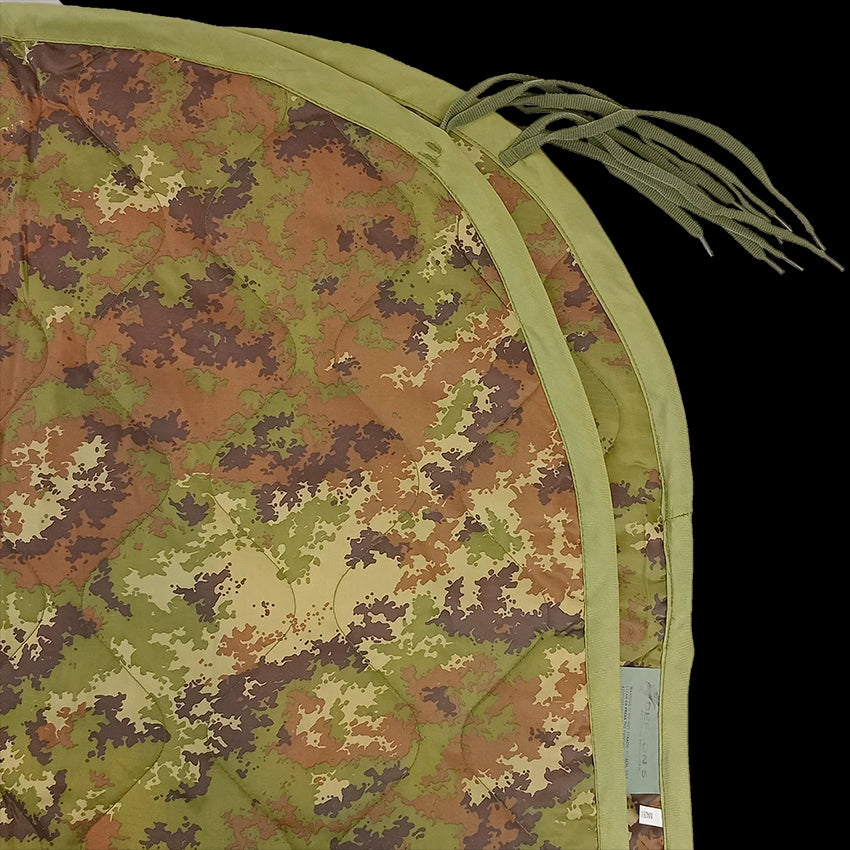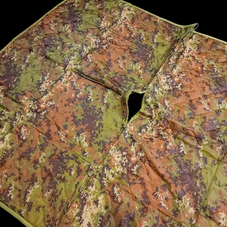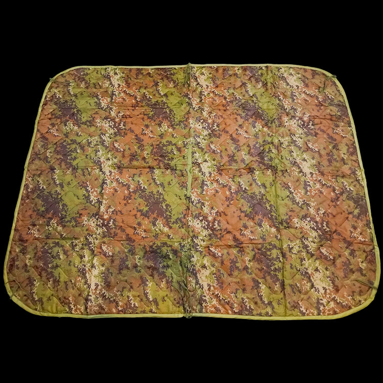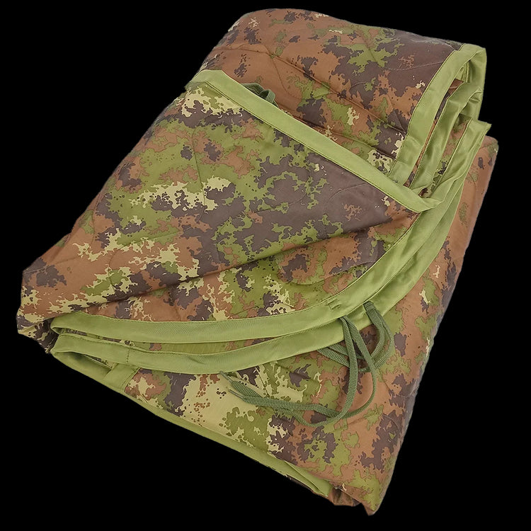 Considered by troops to be one of their most versatile pieces of equipment. This poncho liner can be used as a make-shift sleeping bag, shelter, blanket, camo hide or ground sheet. The eight ties - one each corner and side - allow you to attach it to a poncho or tie it to a tree for shelter.