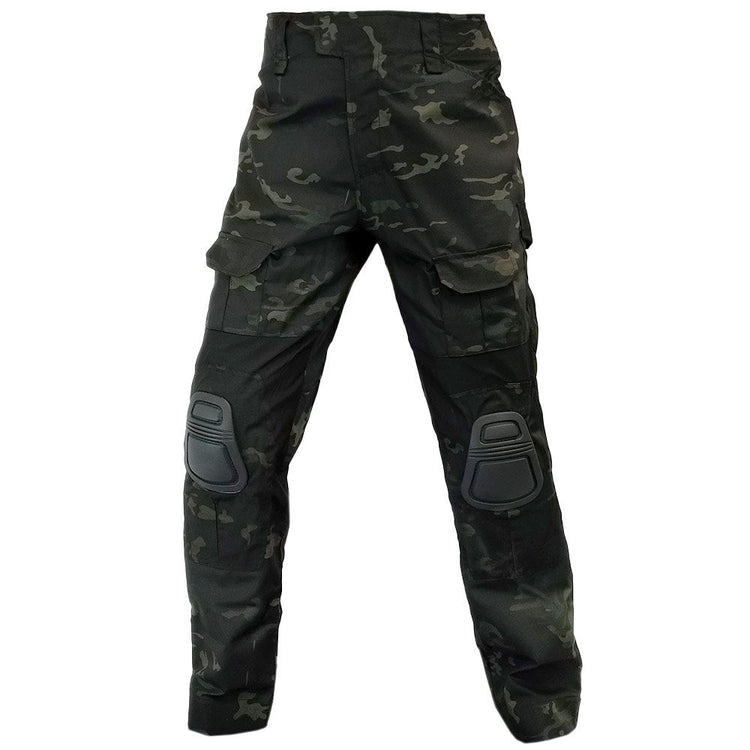 The biggest feature by far are the integrated knee pads - with these you don't have to worry about them sliding down your legs like regular pads. The trousers have slots the pads tuck into and have hook & loop internally to help keep them from popping out. Both the area around the pads and above the buttocks are made from a stretchy, breathable material to help contour with your body while you move. The rest of the trousers are made from durable rip-stop material covered in pockets. Complete in 'black multi camo' for all you urban ops fan boys (and girls!).