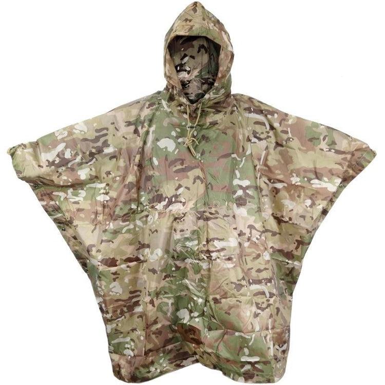 Poncho's are the one piece of equipment you always wish you had when you are caught out in the rain. The beauty of them is their simple design - ready to throw on over your current clothing and gear as well. The sides snap together with domes and the outer edge has eyelets enabling it to be used as a makeshift shelter should you need it.