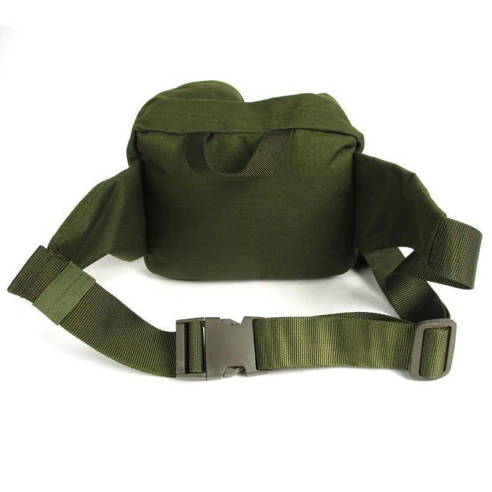 This handy little waist pack is perfect for carrying a snack and drink on short walks or for holding your essential items while traveling. Included with this bag is a water bottle which slides into a secure pouch for quick and easy access. The main compartment is large enough for a sandwich or two, leaving the front pocket free for your smaller items such as keys or a phone. On the back, the bag features a buckle up waist strap with a small pocket and a carrying handle. A convenient pack for a casual walk on the hills.