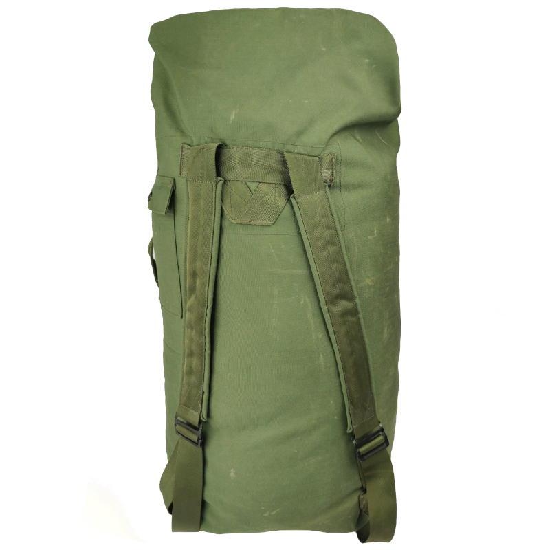This is a seriously heavy duty duffel bag. Genuine US army gear built tough for military life. Its shoulder straps and carrying handle make it easy to lug around the huge amount of gear you can stuff in this mean green pack. The opening can be secured shut by threading the metal loop through the eyelets and attaching back to the clasp, an innovative and easy to access design.