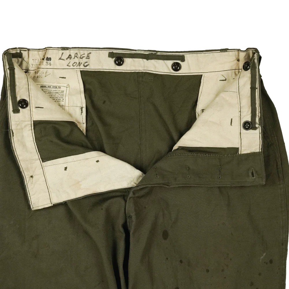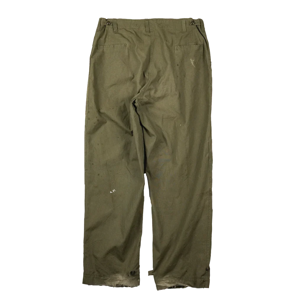 US World War II era M43 field trousers. Military surplus trousers in used condition.