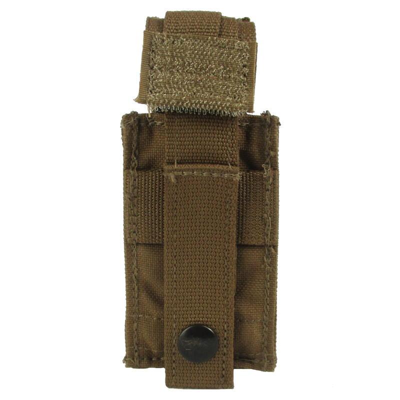 These 9mm magazine pouches are genuine surplus from the USMC (United States Marine Corps). Built in the shape of a solid box using a durable and slightly flexible thermo-polymer. This type of construction allows the clip to securely slot into place so it can be used as an open mag pouch. If you feel the need for extra security you can fasten the retention strap over top. This pouch attaches to MOLLE equipment or you could clip it over any belt that is less than 7cm in width. A solidly built piece of kit that you can use for quick pistol reloads in airsoft or paintball.