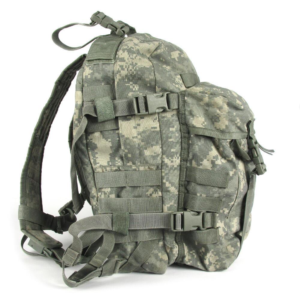 This MOLLE II Assault pack has a decent sized main compartment - approx 27litres - with a slightly smaller compartment on the front - approx 7 litres. Plenty of adjustable strapping to keep things taught and stable. There is also no shortage of PALS webbing to add on any additional items to the outside of the pack. If you have the large MOLLE II rucksack, you can attach this assault pack to the front of it to make one seriously big pack - if you have the legs to carry that sort of load.