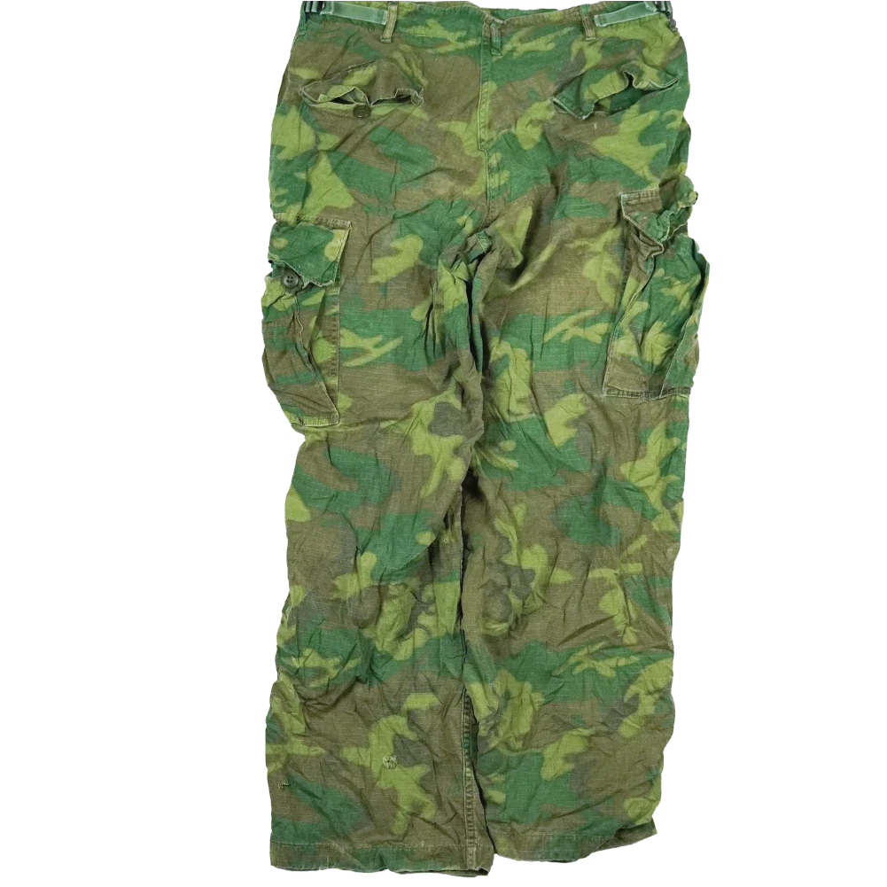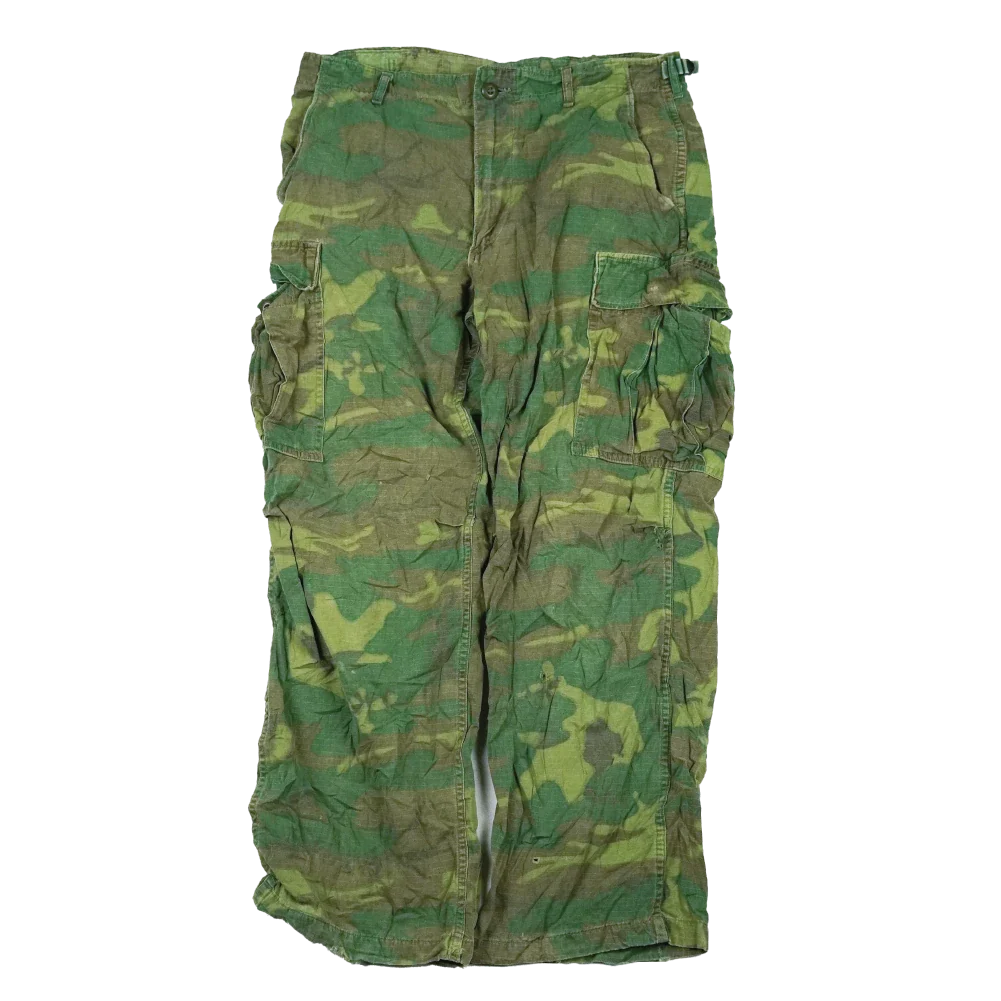 The 6th pattern was the final iteration of the jungle fatigue trousers and was produced in ERDL camouflage with a zipper fly instead of buttons. Manufacture date is 1970, and the pattern was worn during the Vietnam War, including by USMC personnel and some New Zealand and Australian SAS forces in South East Asia.