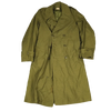 USGI M-1950 overcoat in a double-breasted design. It features waist pockets with flaps that open further into the coat, button-adjustable cuffs, and a buttoned liner attachment point.