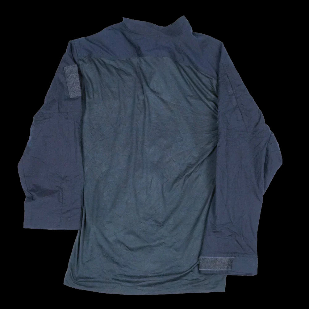 Commercial 5.11 Tactical Stryke TDU Rapid Combat Shirt. This example is in navy colour and sized Large. It features a mixed-material construction typical of rapid combat shirts, combining a lightweight torso with more durable sleeves.