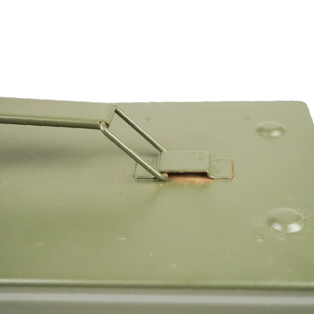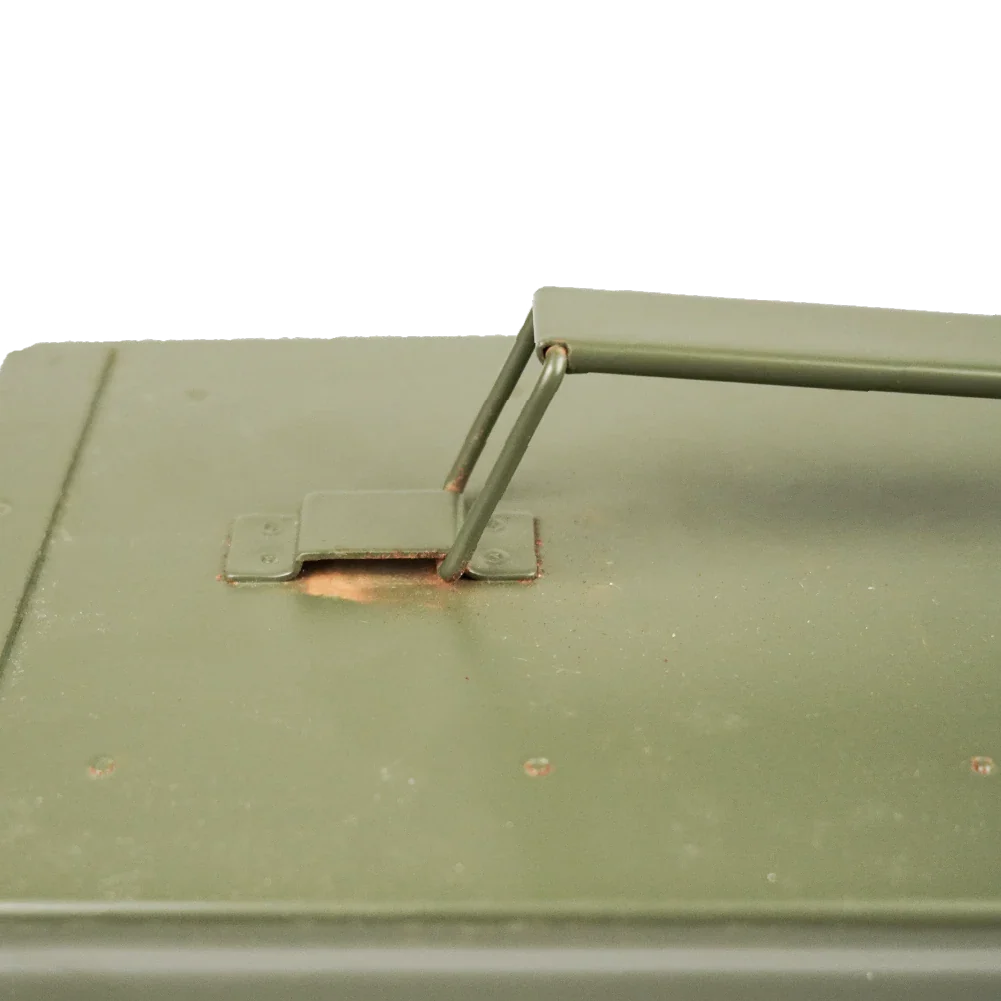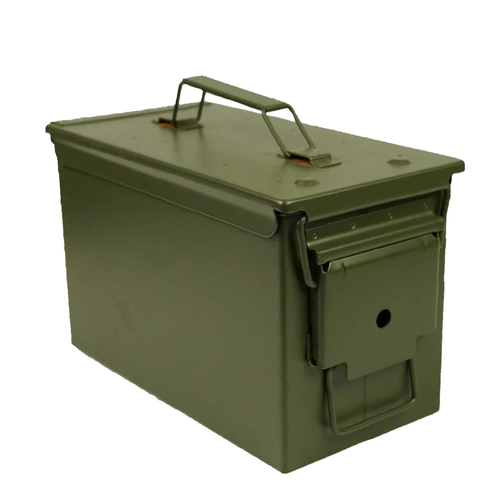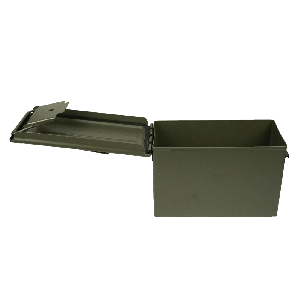 The .50 Caliber Ammo Box also works perfectly as a compact dry box for repair kits, personal gear, first aid supplies, or ammunition. Built tough and made to last, it features a rubber lid gasket that helps create a watertight seal. The lid closes securely with a heavy-duty latch, and the sturdy folding carry handle makes it easy to carry and transport.