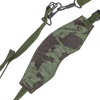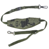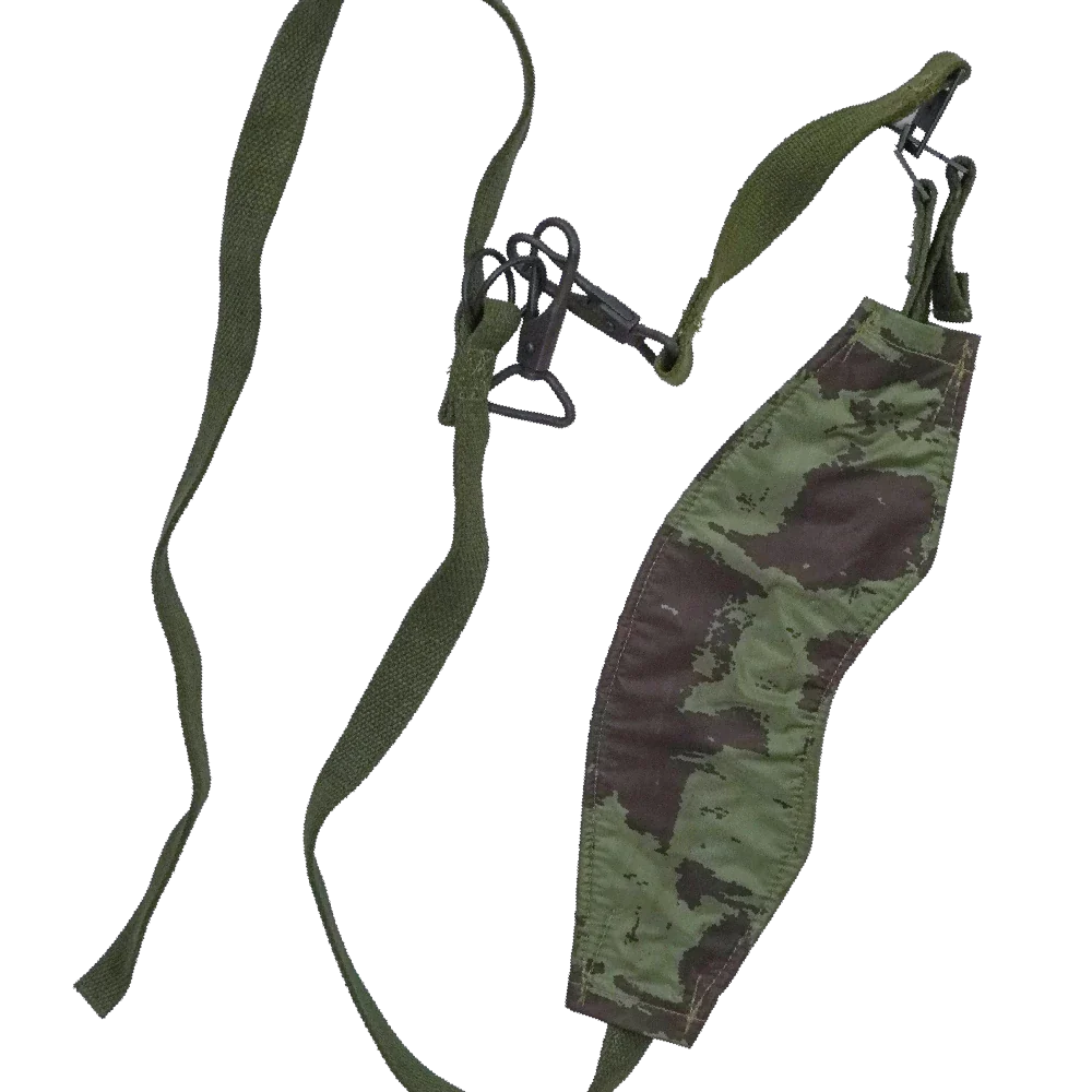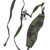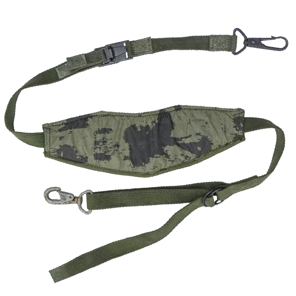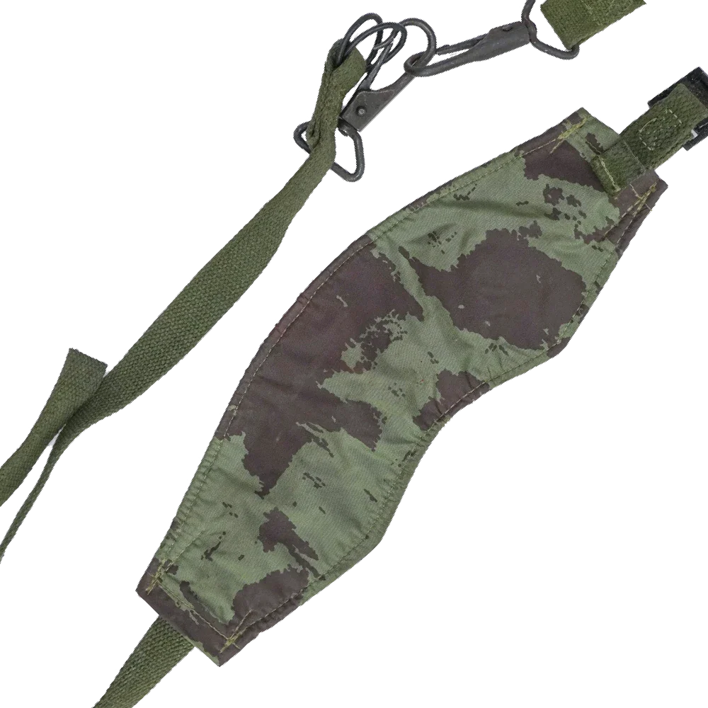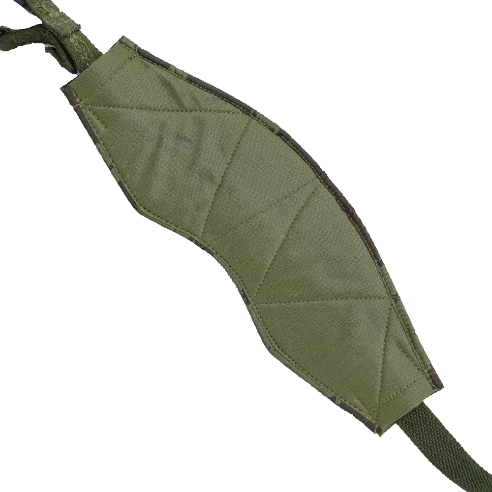 Genuine Australian Army LMG sling in Psycho Camo. Features a wide padded shoulder section with stitched panel construction, attached to olive webbing straps and steel fittings.