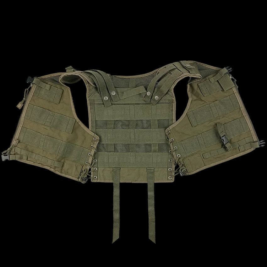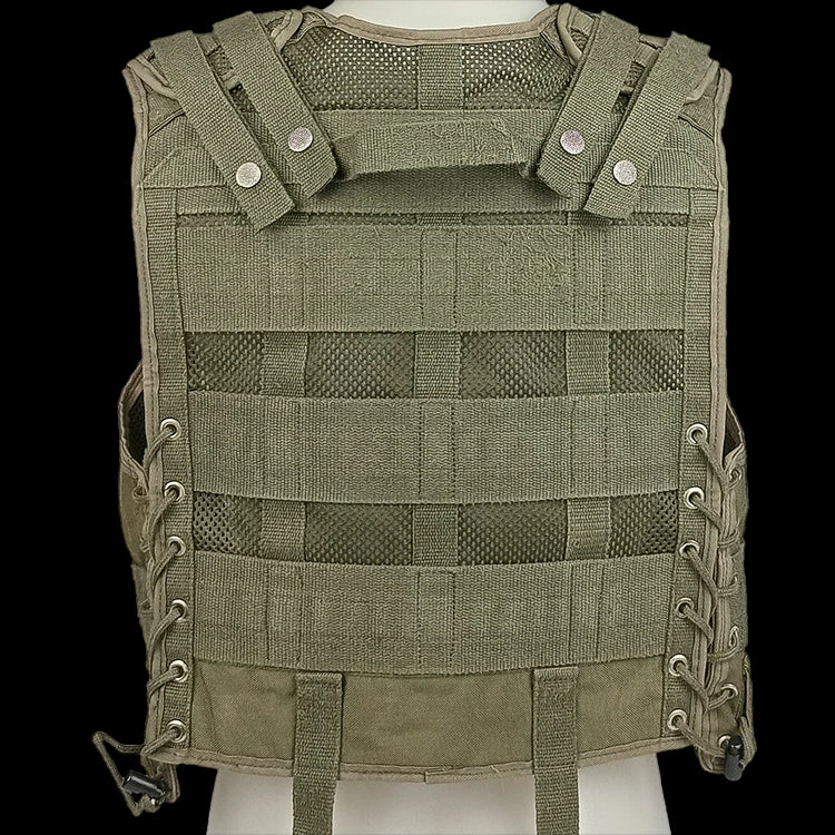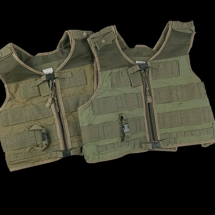 The Austrian tactical vest, part of the KAZ03 uniform, is a rugged load-bearing system designed for field efficiency and durability. With webbing all over, these vests are able to be decked out just how you like them. The attachment webbing (6cm) is much wider than standard PALS but they are ALICE clip compatible, will accept MOLLE if the spacing agrees and of course the Austrian pouches and Glock plastic clips. Adjustable lace up side panels and hook & loop shoulders for a comfortable fit. Like many assault vests, these have two mesh backed, vertical zippered pockets next to the front fastening. In varying shades of olive drab, these just go with everything. Grab one and some Austrian pouches while we have them.
